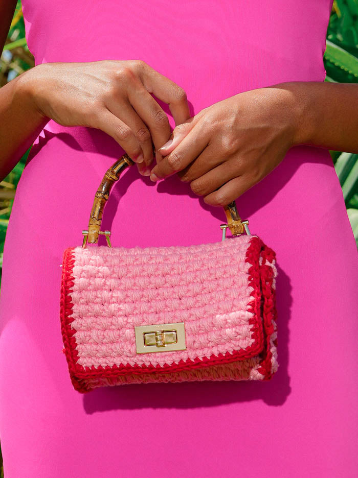 AIRMAIL Mini Crochet Handbag In Pink & Red
