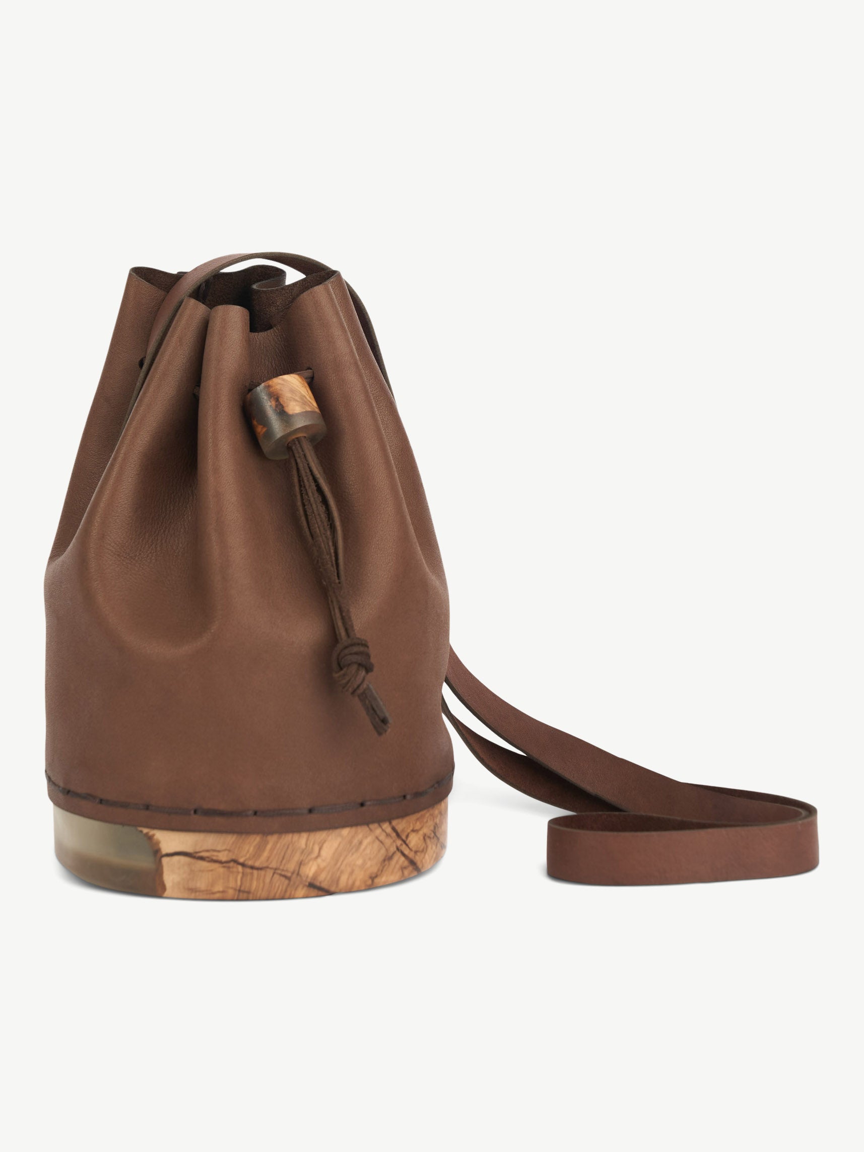 A fusion of nature and luxury, our Handcrafted Bucket Bag is a true statement piece, combining artisanal craftsmanship with contemporary design. Featuring a solid base of resin and olive wood, each bag carries a unique character, ensuring no two are ever alike. The genuine leather body and strap add timeless elegance, making it the perfect blend of modernity and tradition.