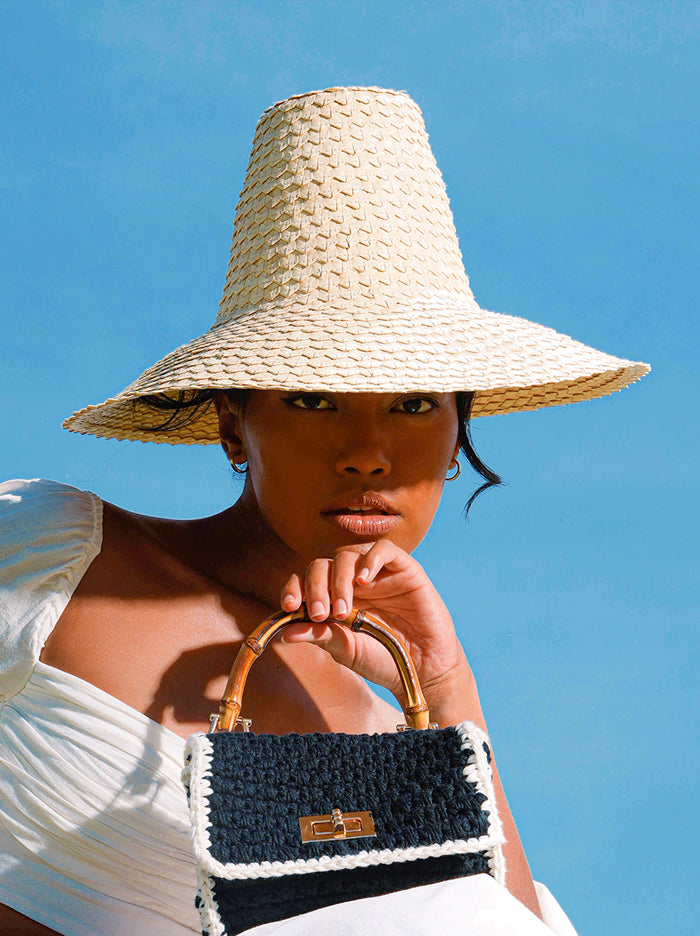 KEMALA is a very special piece designed with beautiful sunny summer days in mind. This piece should be an essential part of any outfit, especially for every island getaway. Crafted from lightweight natural palm straw, KEMALA hat has a high crown and wide down-turned brim to safely protect from the sun’s harsh rays.