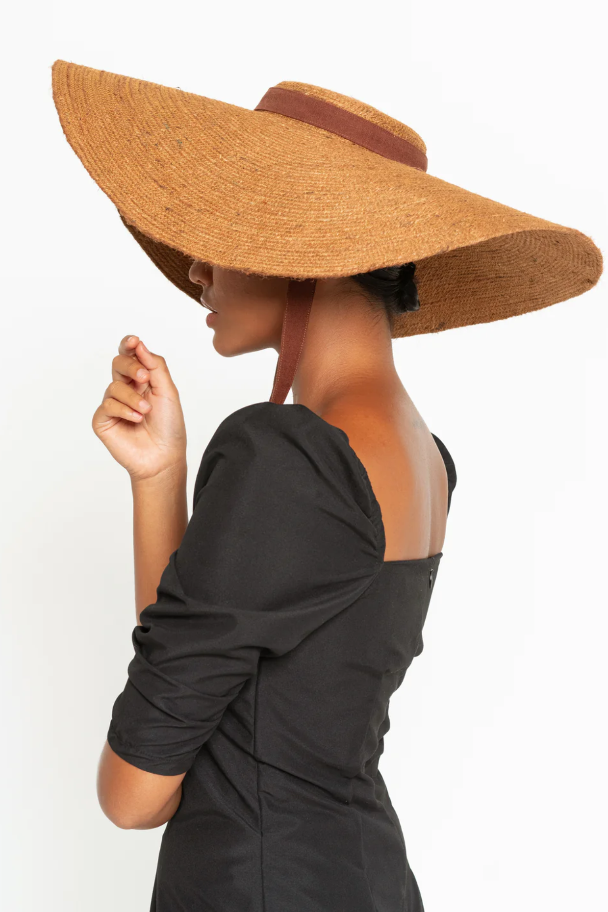 LOLA Wide Brim Jute Straw Hat In Havana Brown