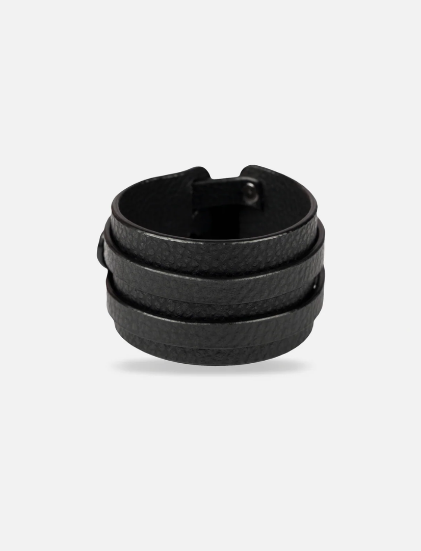 Meet the Insio Bracelet, a bold and beautifully structured cuff crafted from upcycled leather. Its sleek wrap-around design and metallic stud accents strike the perfect balance between refined minimalism and urban edge ideal whether worn alone or layered for added impact.