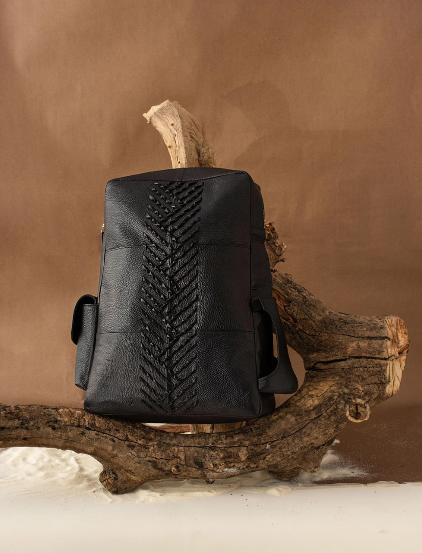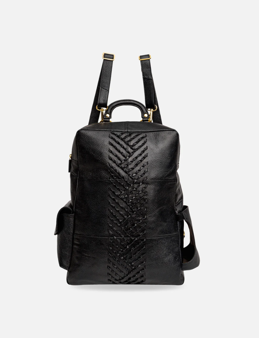 The Khai Backpack is a perfectly attuned, textured accessory for those who love making a statement. Its spacious compartments help organize your necessities while you enjoy a casual outing. Designed with travelers in mind, it features a 3D pattern in the center, a laptop compartment, and bottle holders along the sides.