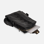 Compartments: Main compartment with padded laptop sleeve (fits a 15-inch MacBook), interior organization system with pen pockets, zipper and slip pockets, inner zipper pocket, quick access side pockets, statement slip-in side pocket