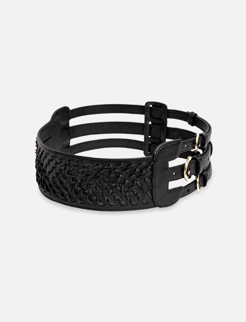 The Khai Trinity Waistbelt is an emblem of artisanal elegance and structured design. Faithful to Econock’s ethos, it features hand-woven leather strands interlaced across solid straps, culminating in a refined centerpiece emblem. The result is a piece that cinches the waist with quiet strength and elevates any outfit with understated luxury.