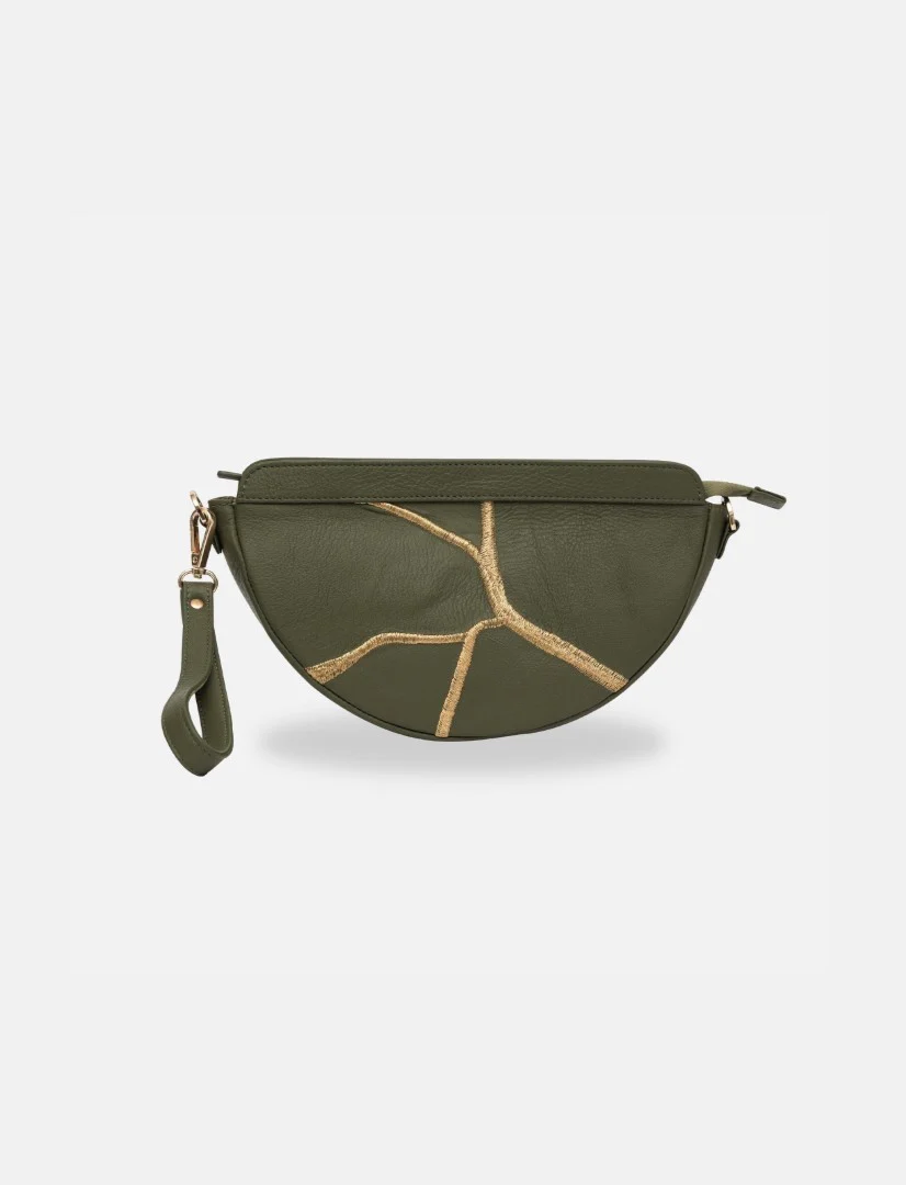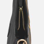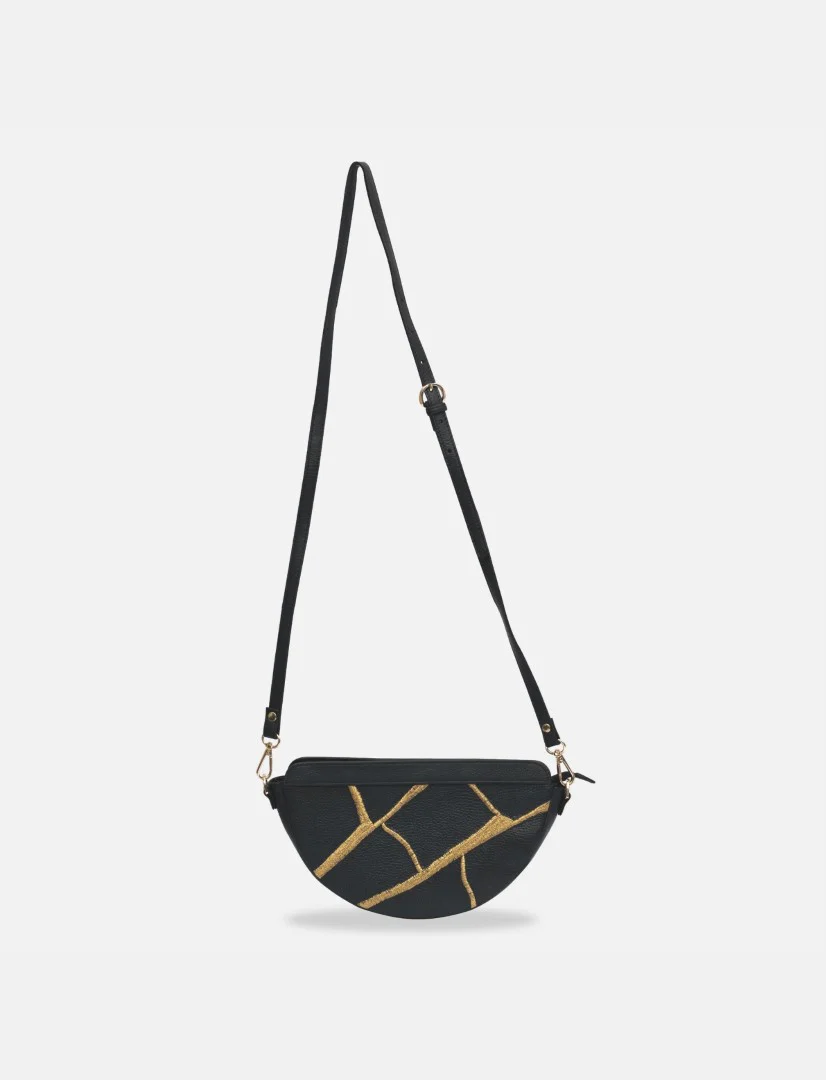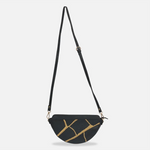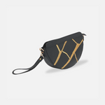 The Maeve Crescent Wristlet in Black is a luxurious carryall designed to elevate your everyday essentials with grace and efficiency. Thoughtfully crafted as a zippered pouch, this wristlet keeps your chargers, cords, makeup, and personal items organized. Its detachable wrist strap allows it to function as a standalone piece or attach it to a larger bag as an extra pocket, marrying practicality with elegant design. Enjoy flexible energy flow enhanced by shimmering gold embroidery.