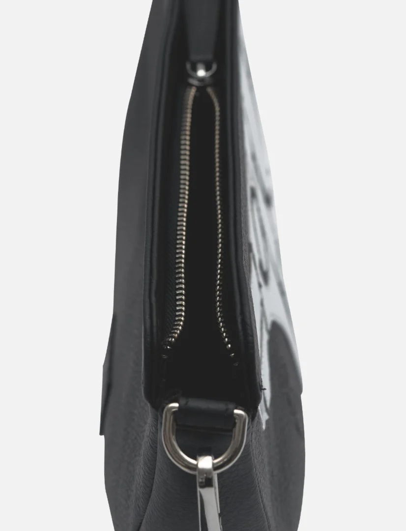 The Neo Crescent Clutch blends bold form with everyday function. Designed with a sculptural circular handle inspired by ’60s mod style, it gives you the elegance of hand carry and the versatility of crossbody wear thanks to its detachable strap. Crafted from upcycled leather with contrast paneling, this clutch adds structured style to your look—from creative days to evening evenings.