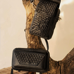 The Neo Wallet is a thoughtful blend of structure and texture, featuring an intricate basket-weave design crafted from entwined leather fabrics. Compact yet versatile, it’s designed to securely hold your cards, cash, phone, and essentials, seamlessly transitioning from a sleek wallet to a statement sling bag using the optional adjustable shoulder strap.