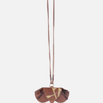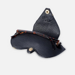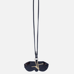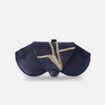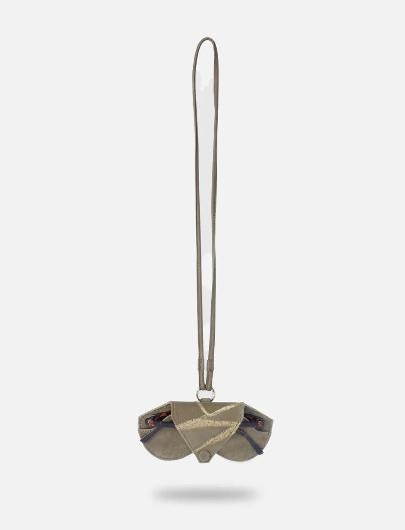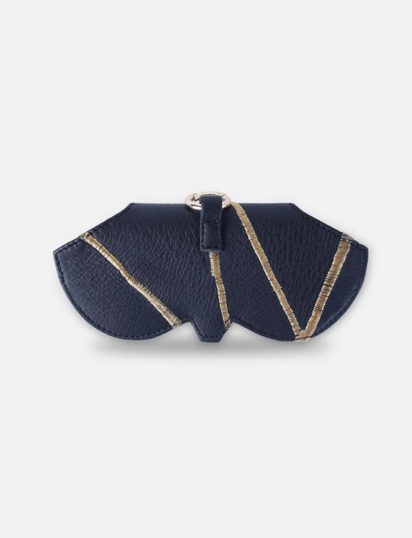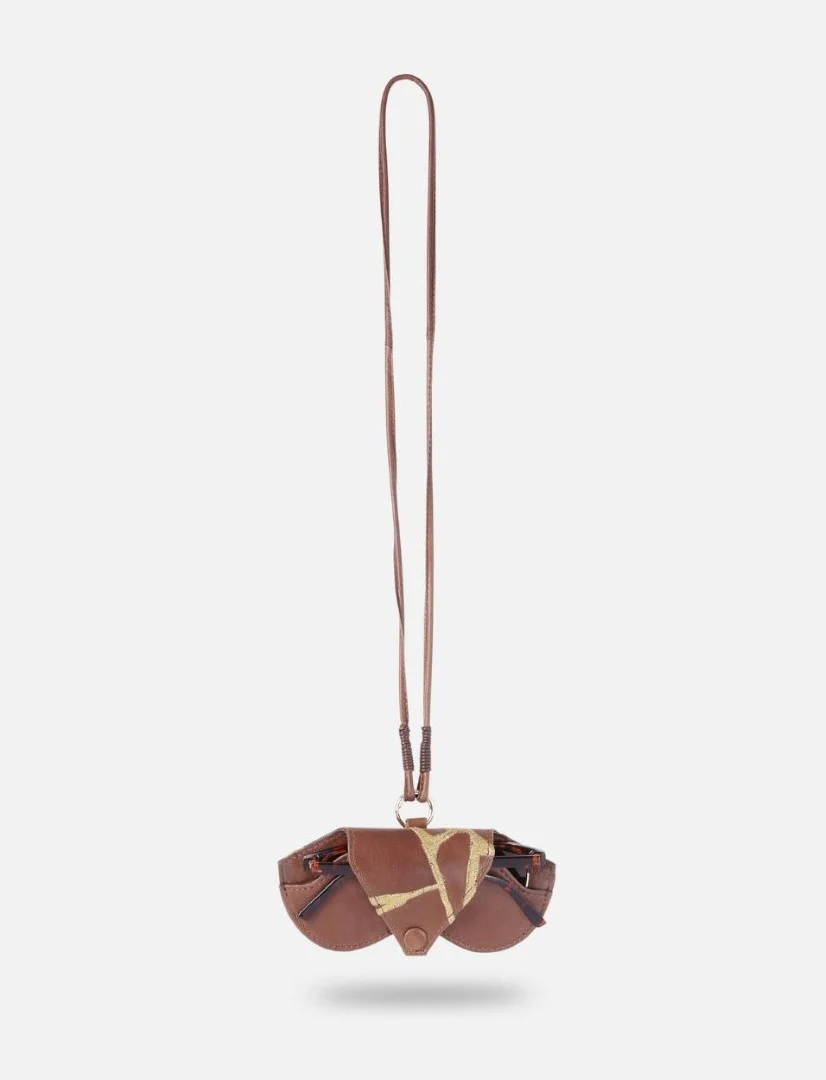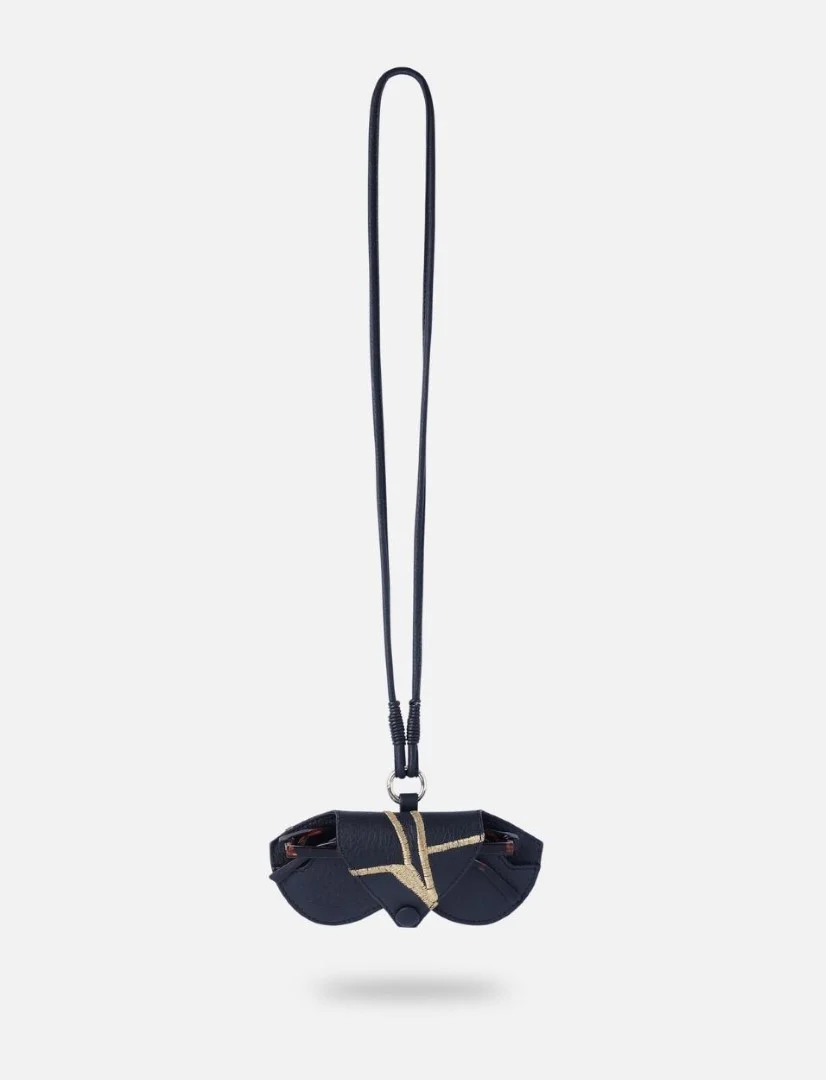 The Noir-Kin Sunglass Case is a sleek and stylish accessory that protects your eyewear with elegance. Crafted from upcycled leather and finished with gold-tone hardware and delicate gold-thread embroidery, it features a detachable lanyard that transforms it into a refined neckpiece. Lightweight yet durable, this case blends fashion and function for everyday use.