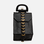 The Sai Satchel is a structured crossbody that radiates strength and purpose. With its clean lines and defined silhouette, it embodies the spirit of perseverance and subtle power. Crafted from upcycled leather and adorned with a bold gold motif, this satchel rests across your back like modern armor offering functionality wrapped in quiet confidence.