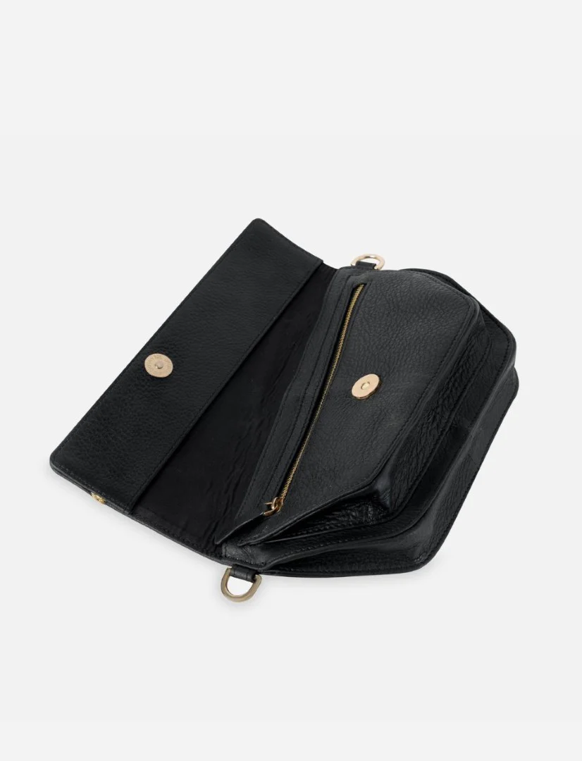 The Shiatsu Crossbody features gold-toned hardware and a magnetic flap closure. It includes an inner zipper pocket for valuables, an accessible compartment for essentials, and an adjustable strap for versatile styling. Each piece comes packaged in a muslin dust-sleeve for an eco-conscious and thoughtful presentation.