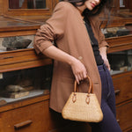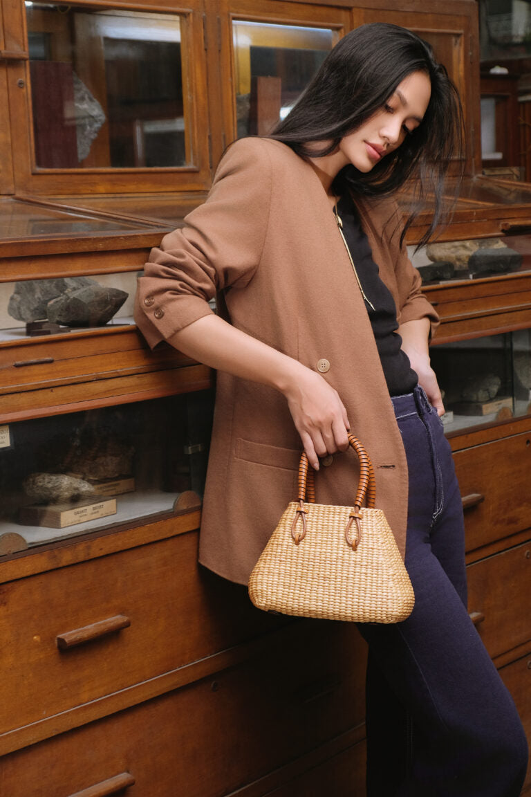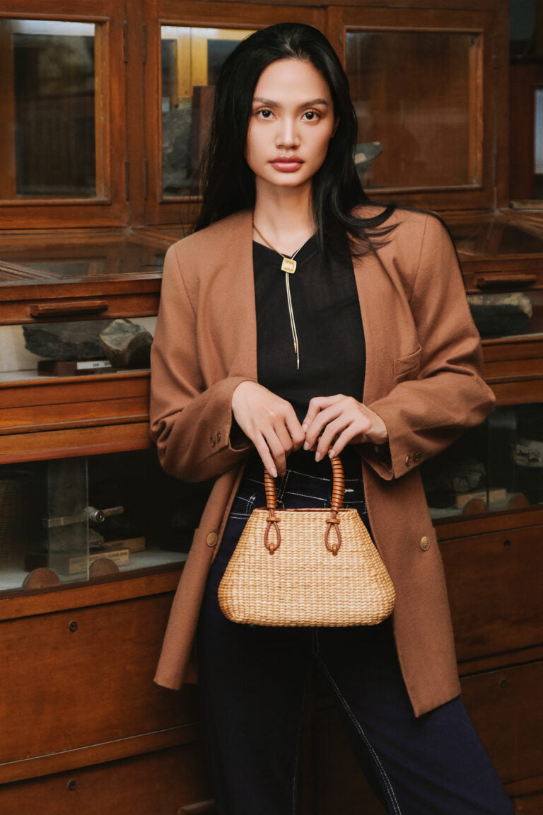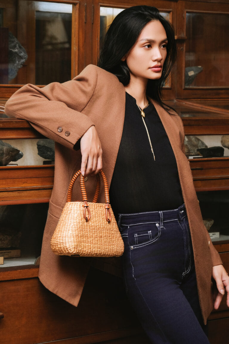 Orel Luu is a unique and sophisticated design made from water hyacinth fiber, featuring delicate cowhide leather details that symbolize tree roots growing and overcoming all barriers. The sturdy structure of the bag body contrasts with the softness of the straps, representing the natural image that Comay seeks to express in each product.