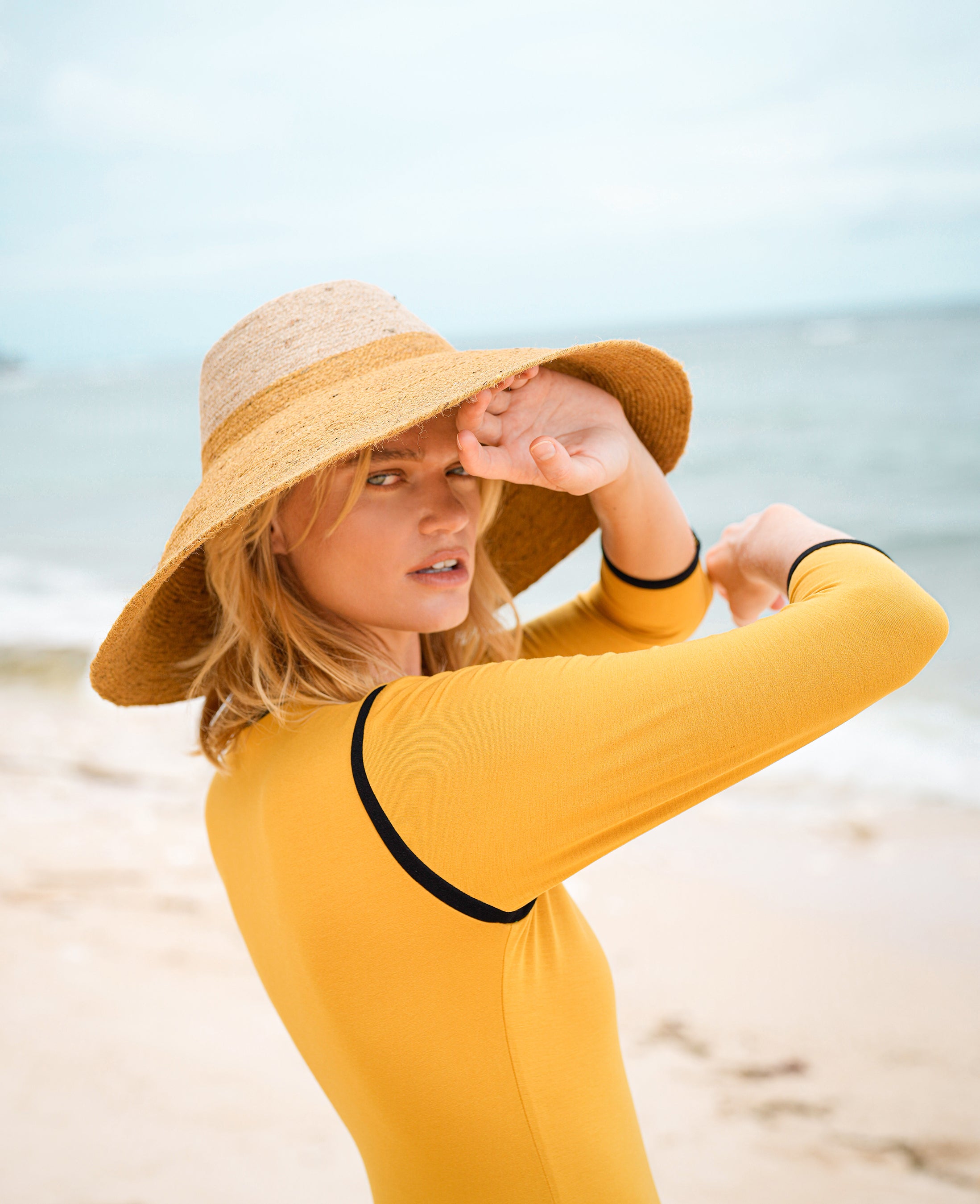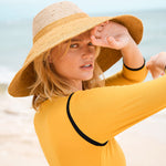 The Riri Duo handwoven straw hat is the ultimate accessory for your tropical escape. Meticulously crafted from natural jute straw in a stunning blend of light beige and muted gold, it perfectly balances boldness with effortless versatility. Inspired by the charm of California’s coastal lifestyle, this hat is lovingly handcrafted by our talented female artisans in Bali. Featuring a sculpted crown and a wide brim, it delivers both timeless style and reliable sun protection.