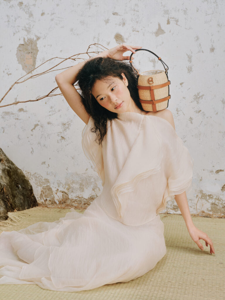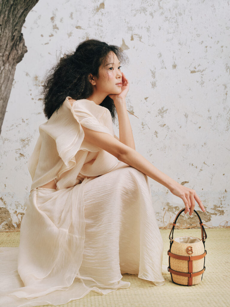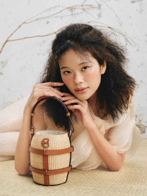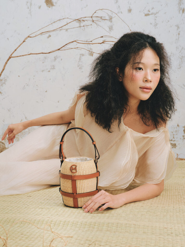 The Thoc bag is a tribute to resilience, inspired by the rice bales carried during Vietnam’s historic years of struggle. Each plump, golden grain of rice is symbolically reflected in the meticulous weaving of water hyacinth fibers. The structured leather bands encircling the bag mirror the strength and unity of those times, transforming a piece of history into a timeless accessory.