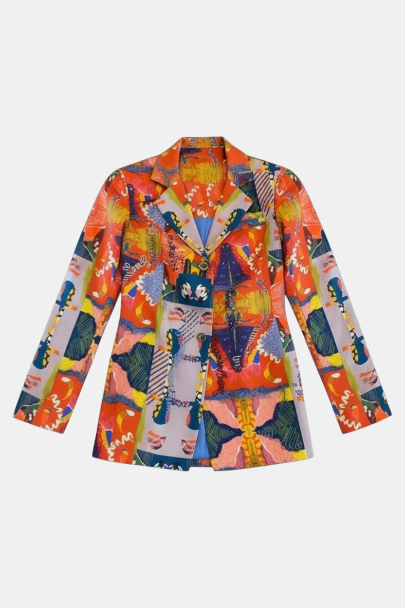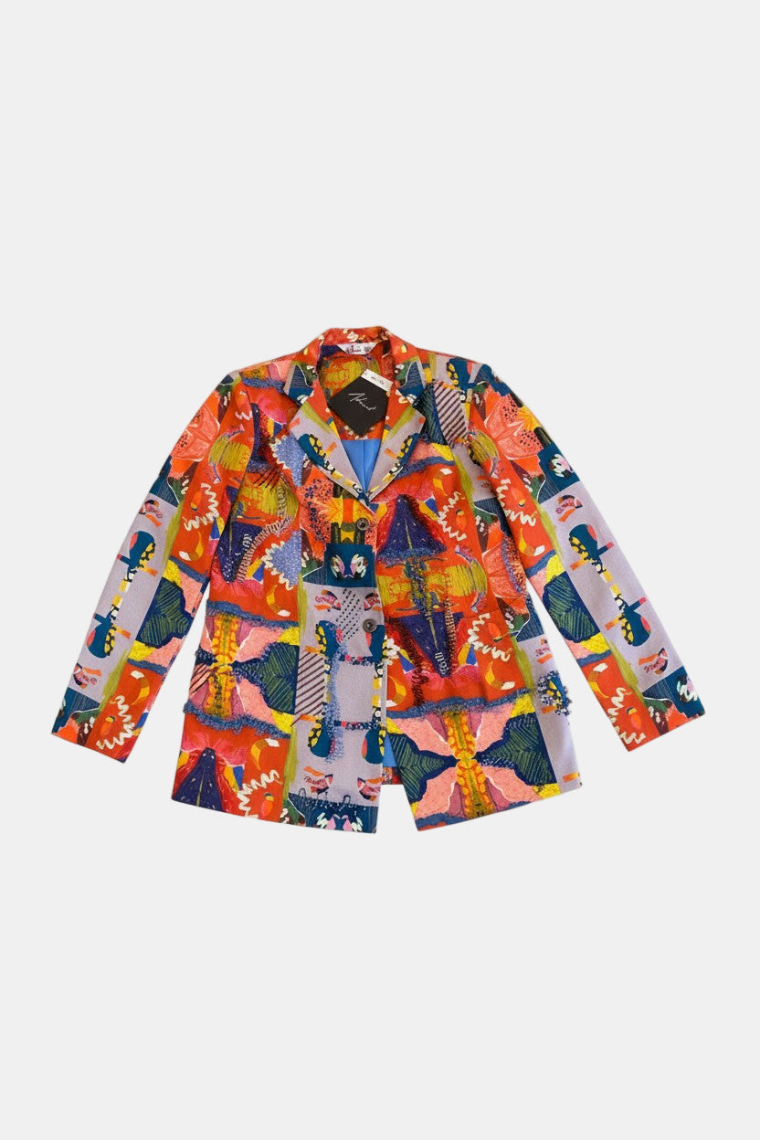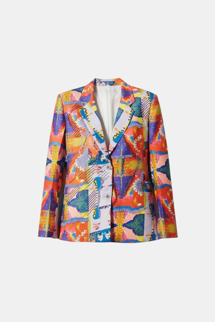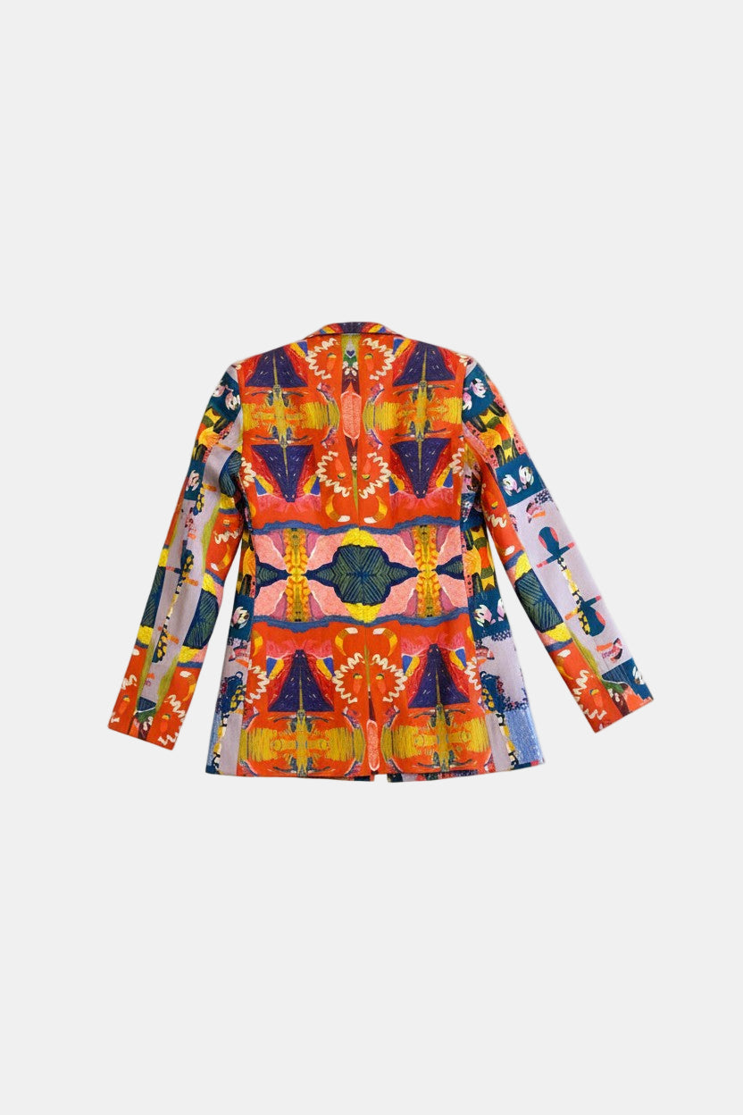 A boxy, hand embroidered blazer with padded shoulders. Constructed using Tencel ™ Twill.