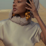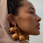 PRELUDE features a cascade of arabesque beads in various sizes, gracefully suspended to create a stunning, fluid design. All metal accessories are gold-plated, adding a layer of opulence and timeless elegance to this piece.