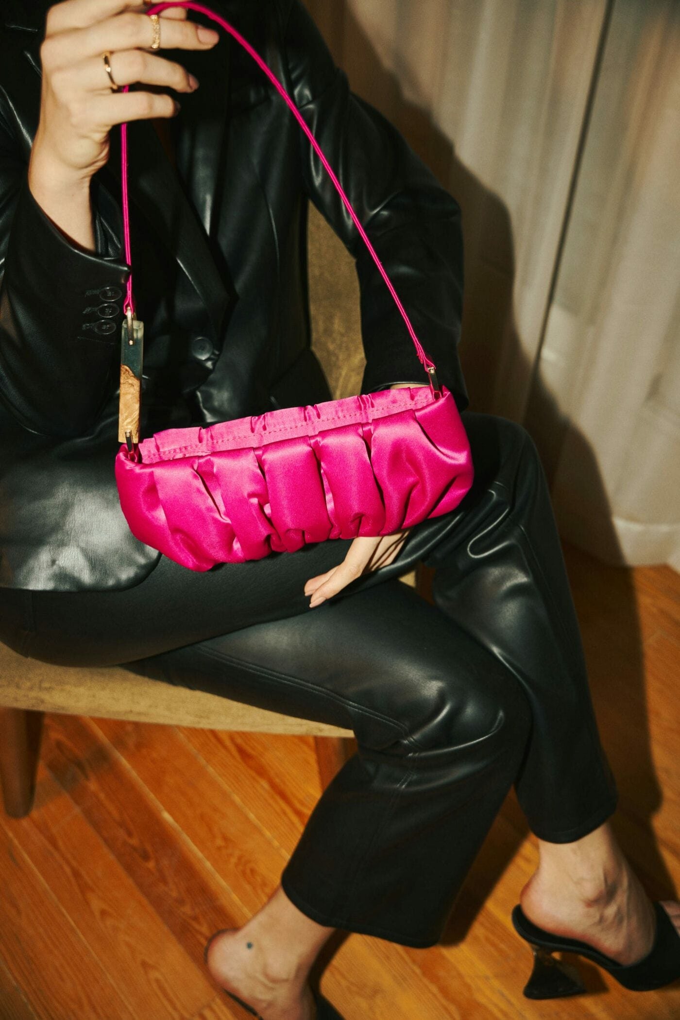 The EXTRA bag is a statement of bold individuality, designed for those who refuse to be ordinary. With its draped rectangular silhouette, this limited-edition piece is elevated by a custom BOADK handle accessory and refined golden hardware, blending artistry with luxury.