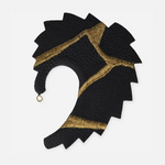 The ALPS earcuff is a striking accessory that seamlessly blends bold design with sustainable craftsmanship. Its sculptural silhouette, crafted from high-quality leather and adorned with delicate gold-toned hardware, offers a non-piercing solution for those seeking to make a statement. Designed to comfortably embrace the ear, this piece adds a touch of avant-garde elegance to any ensemble.