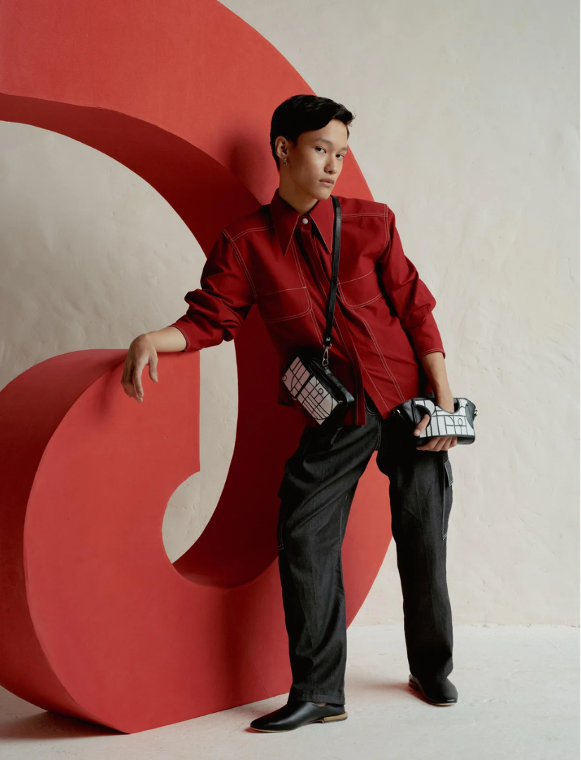 Wrist Cuff: Dynamic leather palm cuff that transforms into a wrist strap when styled as a clutch