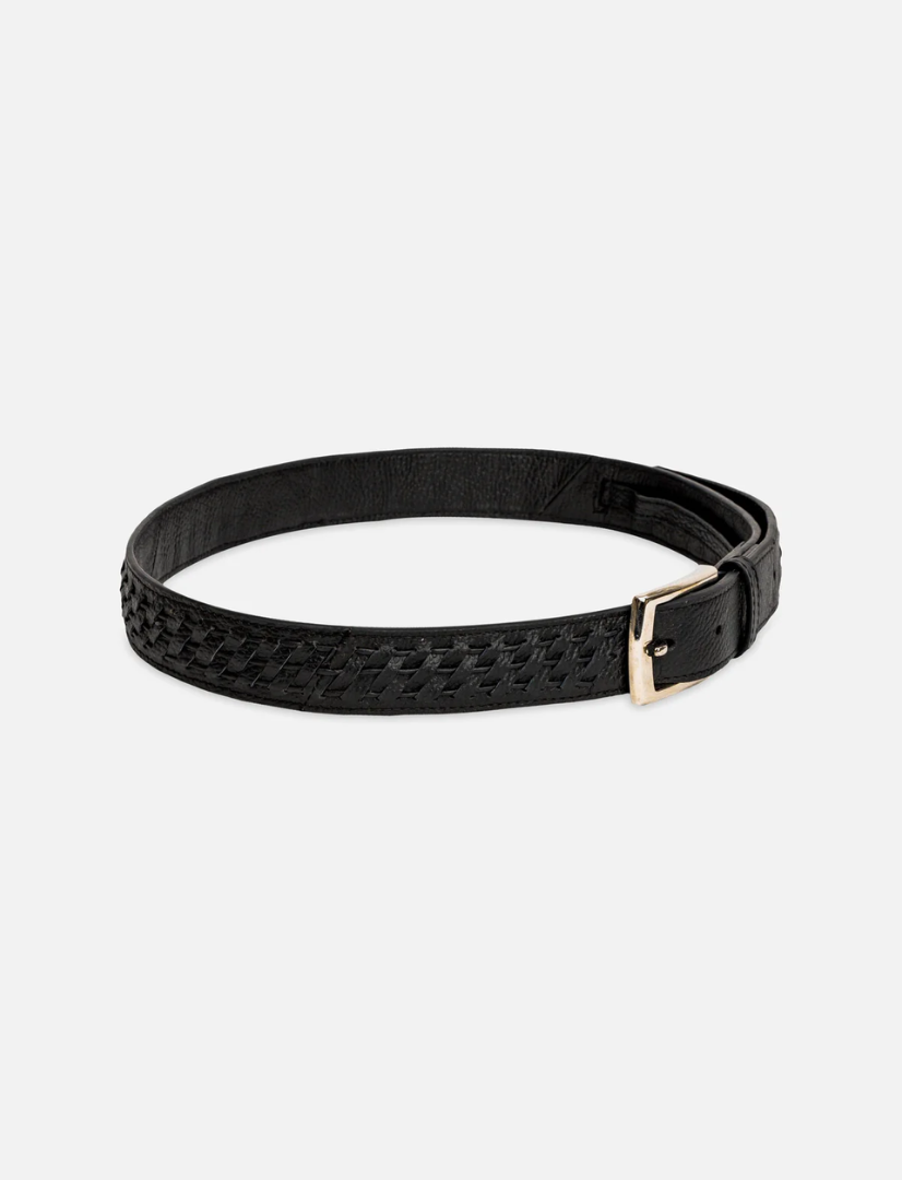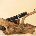 The Escale Male Waist Belt is a refined and timeless accessory designed for effortless sophistication. Made from upcycled black leather, it features delicate, hand-embroidered stitching along the edges—adding a subtle yet elegant texture to a classic design. Whether you're preparing for a boat outing or navigating city life, this belt strikes the perfect balance between understated refinement and durability.