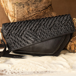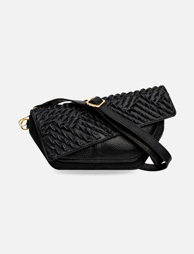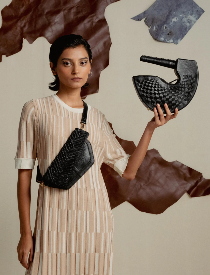 The Khai Fanny Pack is a stylish, compact accessory designed for hands-free convenience. Crafted from upcycled leather, it features a sleek silhouette with gold-toned accents, making it both practical and fashion-forward. Perfect for carrying your essentials while exploring the city or traveling.